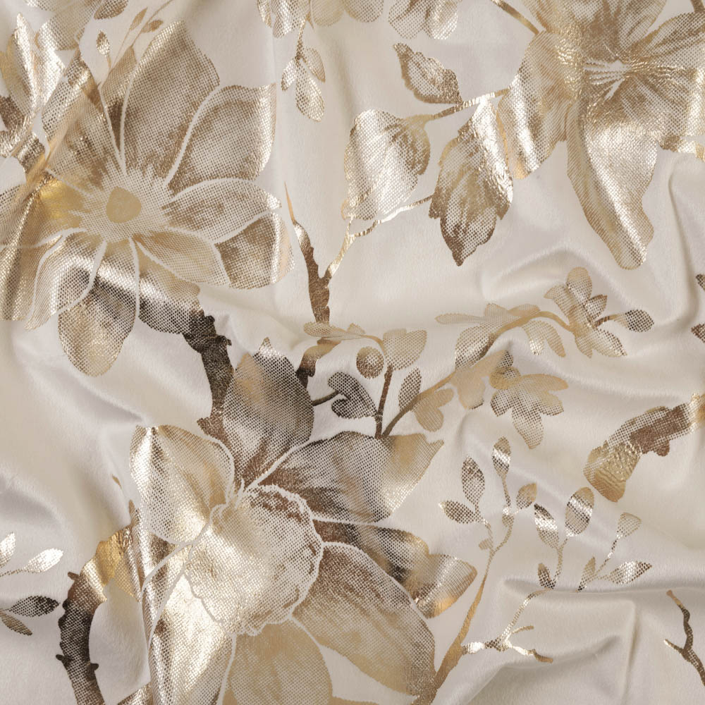 Sametový závěs na míru Isabela Flower IBL-023 Zlaté květy na krémovém