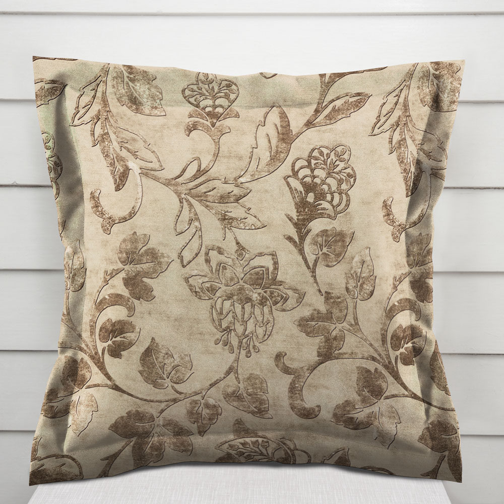 Sametový povlak na polštář s lemem Tamara TMR-056 Hnědé zámecké květy na světle hnědém